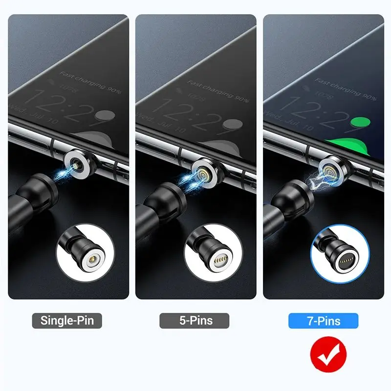7Pin 3A USB-A Type C Magnetic Plug Tips Fast Charging Cable Adapter For Samsung Magnet Charger 360° Degree Rotation Connector
